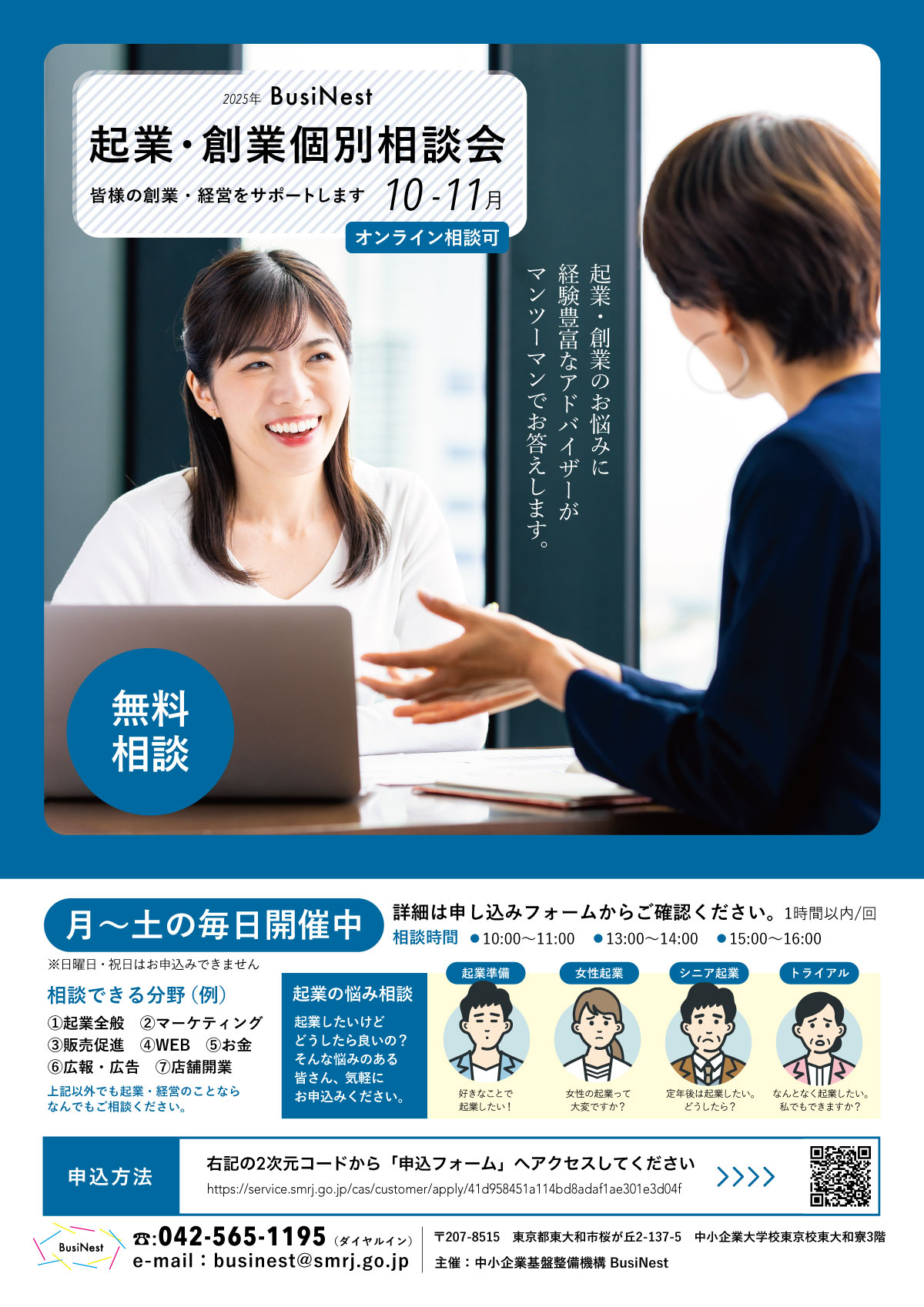 <10-11月開催>起業・創業個別相談会(オンライン相談可)